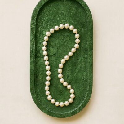 Enhance your living space with the refined charm of this Green Marble Oval Decorative Tray. Meticulously handcrafted from genuine natural marble, it features mesmerizing green tones and organic veining patterns that make each piece truly one-of-a-kind. The sleek oval design blends contemporary elegance with timeless craftsmanship, offering both beauty and functionality.